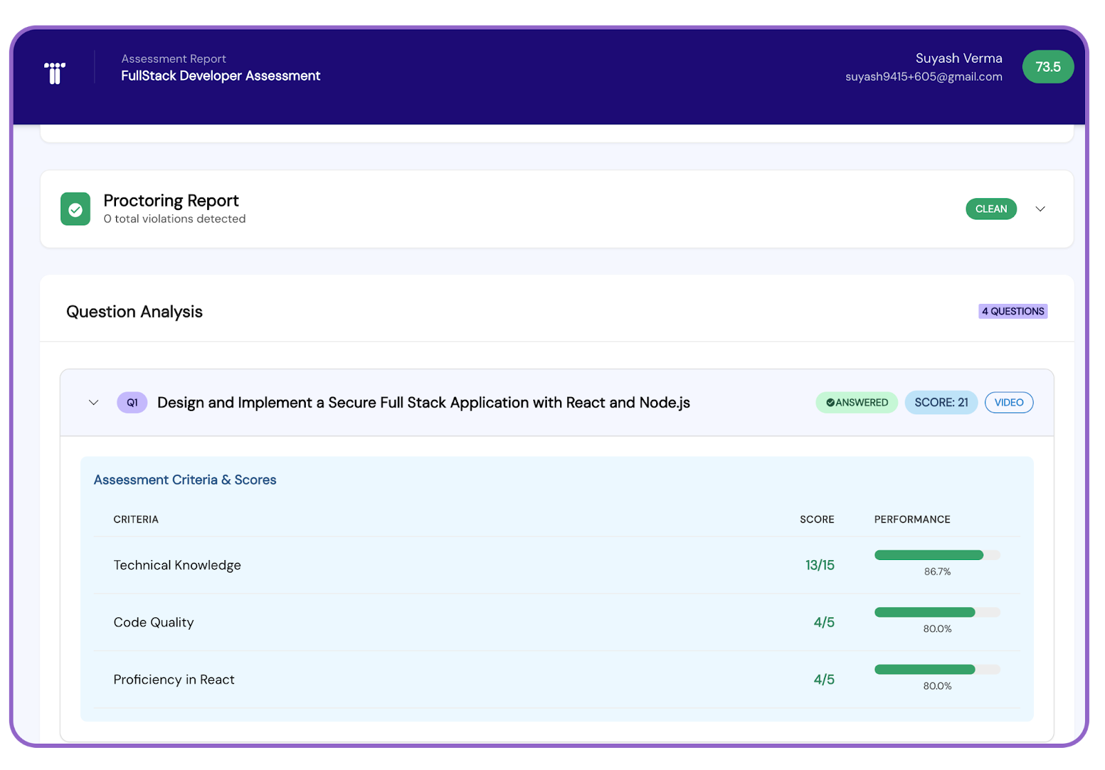 After completion, Talowiz generates a structured interview report that is automatically attached to the candidate profile inside the pipeline.