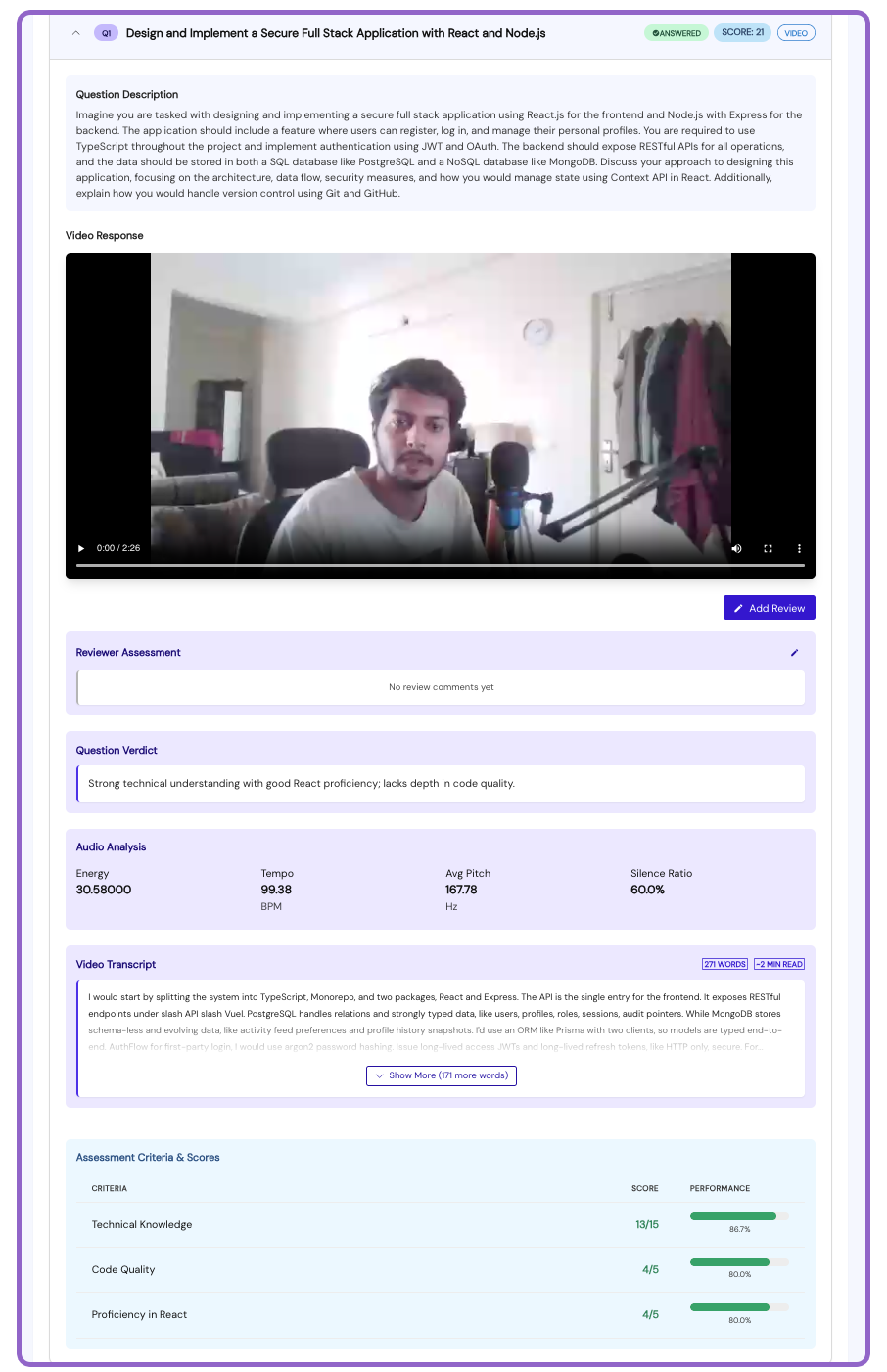 Talowiz analyzes each response against parameters defined for the role.